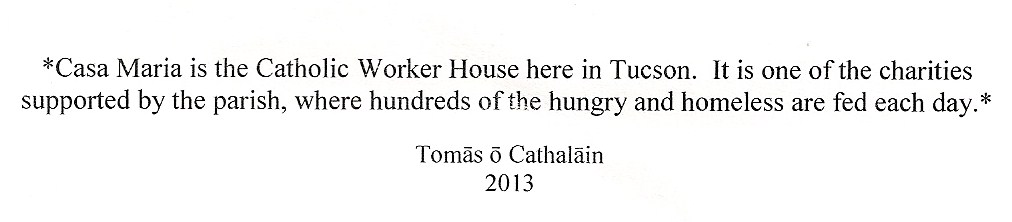 Thanks to Msgr. Tom Cahalane for his beautiful and intense reflection on the real meaning of ‘Casa Maria’ in his Christmas card for 2013.