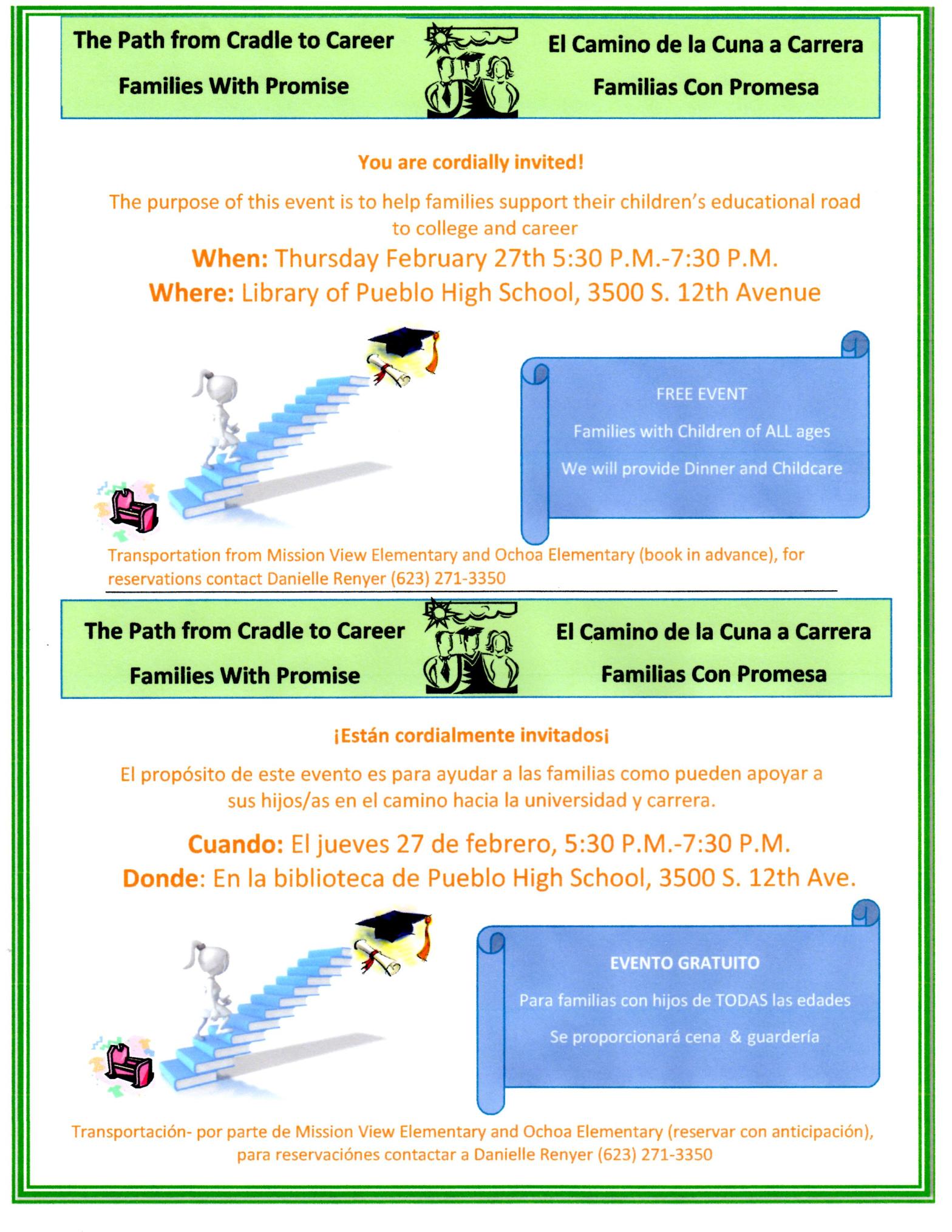 Casa Maria invites you and your family to join us on Thursday, February 27th from 5:30 – 7:30 p.m. at the Family Cradle to College Night at Pueblo High School.