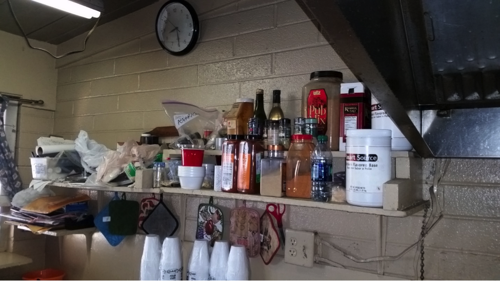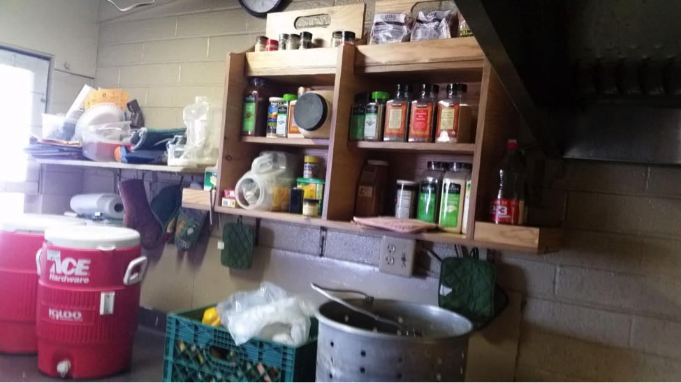 To that end, additionally we looked at making their space more efficient with simple improvements, increased storage and improved lighting. The spices the cooks used were haphazardly stored on a shelf, near the cooking area, and not easily accessed. We built and stocked a custom spice rack to make this task a little easier.