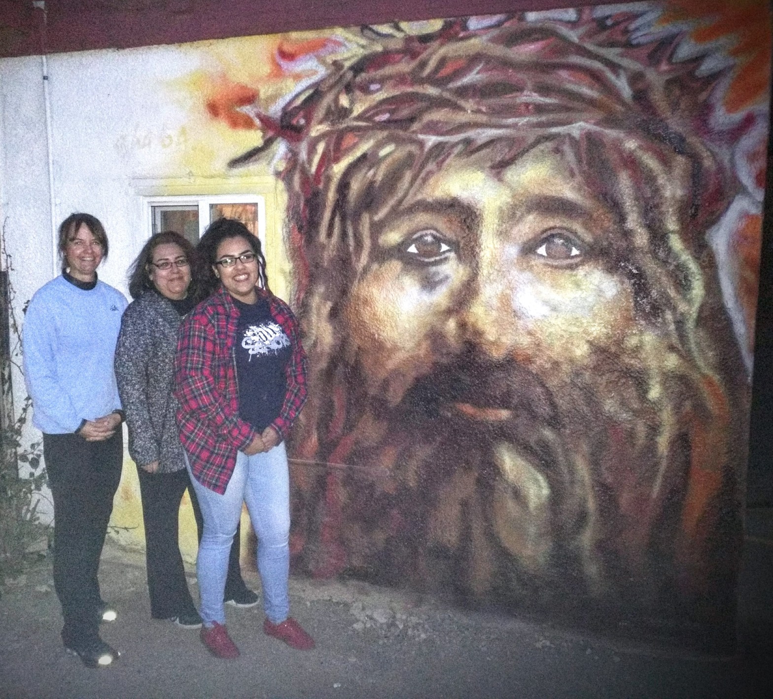 Thanks to Lupita Parra, Alexis Olalde and Barbara Truman from Santa Catalina Parish in Oro Valley for fixing the Jesus Mural.